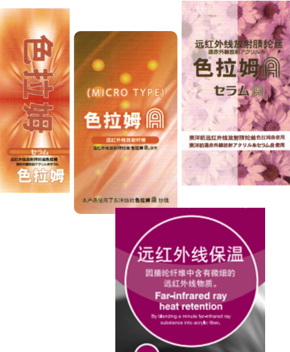 東洋紡公司作為保暖內衣材料銷售吸濕發熱性材料”依克絲”。但還有一種使用和“依克絲”完全不同的手法來開發的保暖內衣材料。這就是“色拉姆A”,“色拉姆A”是把具有遠紅外線放射性的陶瓷超微粒滲入到腈綸短纖維中的。由于這個陶瓷超微粒反射人體發出的遠紅外線,從而“色拉姆A”發揮對秋冬內衣不可缺少的優異的保暖效果。而且“色拉姆A”的保暖效果洗后幾乎沒有減少,其顯色性、染色牢度也與普通腈綸短纖維相同。 把其他物質滲入到腈綸短纖維中時,需要高度技術能力,是因為需要把其他物質均勻滲入到腈綸短纖維中,再加上需要保持腈綸短纖維的顯色性、染色牢度等基本物性。東洋紡公司用優異的技術能力解決這些問題,1980年代開發出了具有防靜電性能的腈綸短纖維。應用技術成功開發的產品就是“色拉姆A”。在日本“色拉姆A”被用于內衣、外衣、襪子、邁耶毛毯以及地毯等服裝、床上用品、室內裝飾用品等各種用途。 該公司從2000年開始在中國銷售在日本獲得高評價的“色拉姆A”,此后“色拉姆A”作為保暖內衣用材料擴大銷售量,現在連消費者都能認識“色拉姆A”的商標,在中國,頂級內衣企業多年來使用“色拉姆A”。是因為使用“色拉姆A”的保暖內衣在市場上銷售穩定增長。這一趨勢波及到中小型服裝企業,“色拉姆A”的商標已經滲透到了普通消費者。  |